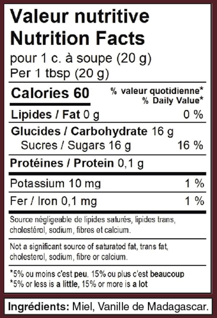 Ingrédients : Miel, Vanille de Madagascar.